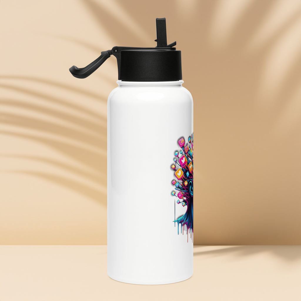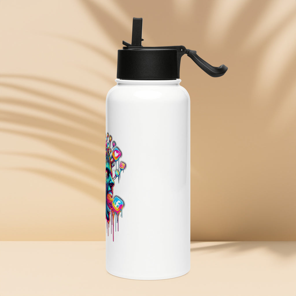 Edelstahl Trinkflasche mit Strohhalm- Digital Overload- Social Media Sucht Design