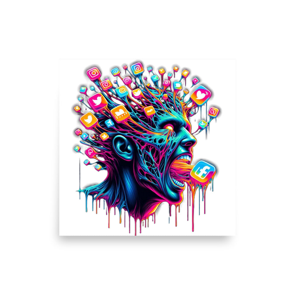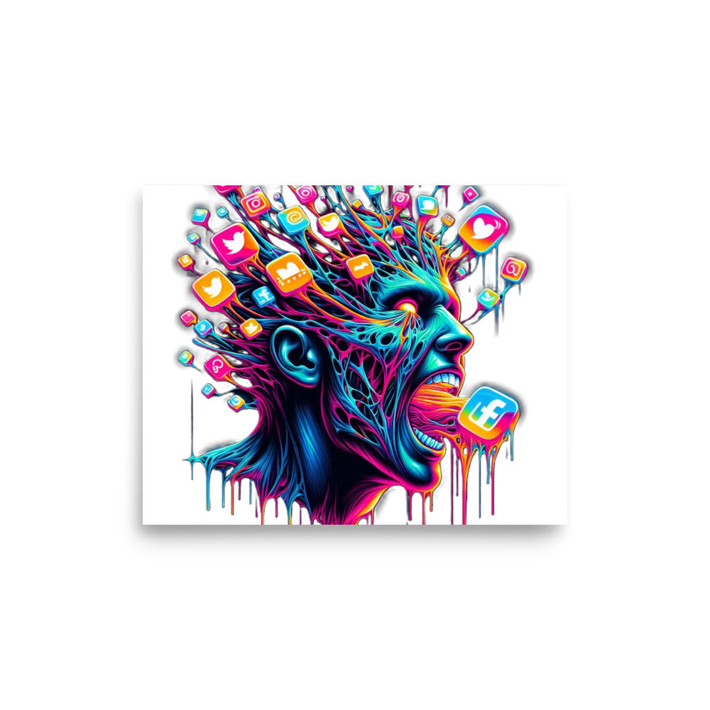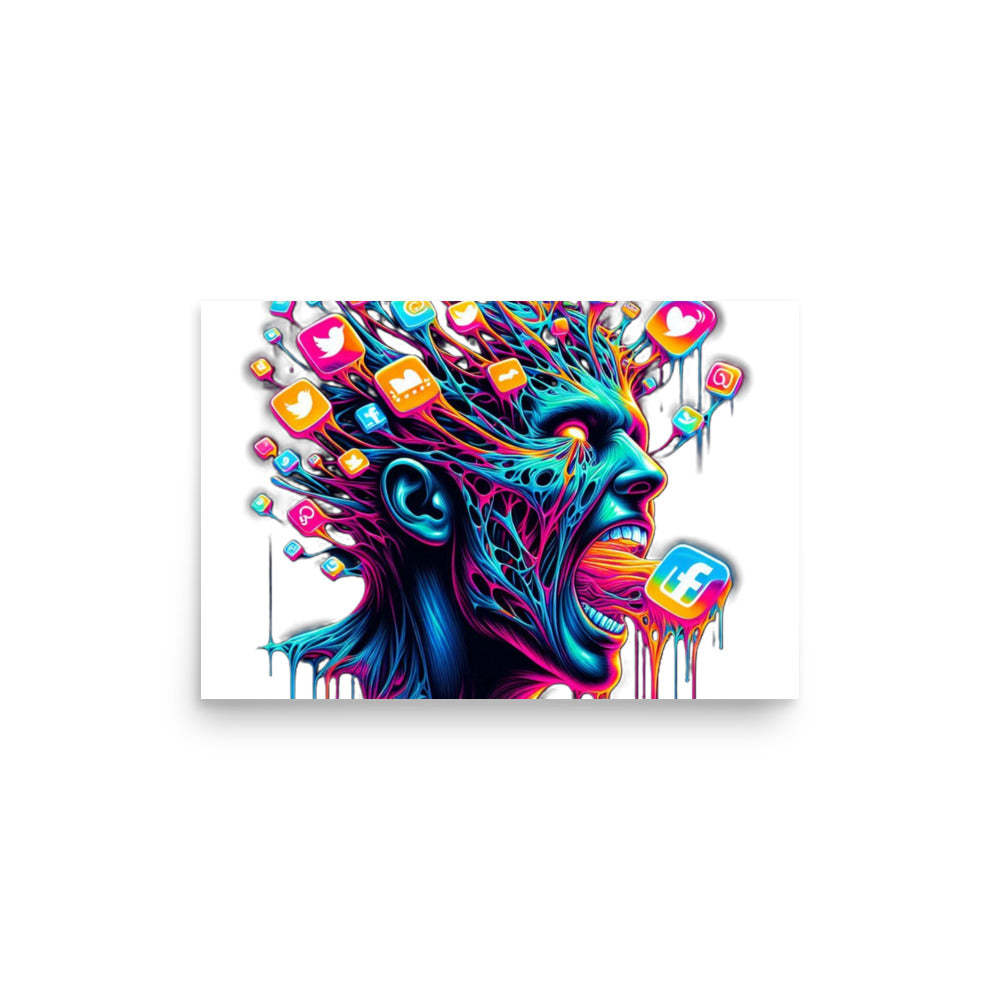 Tauche ein in das Chaos der digitalen Welt mit diesem psychedelischen Design, das den Informations-Overload und die Mediensucht darstellt. Ein Must-have für Cyberpunk- und Kunstliebhaber.