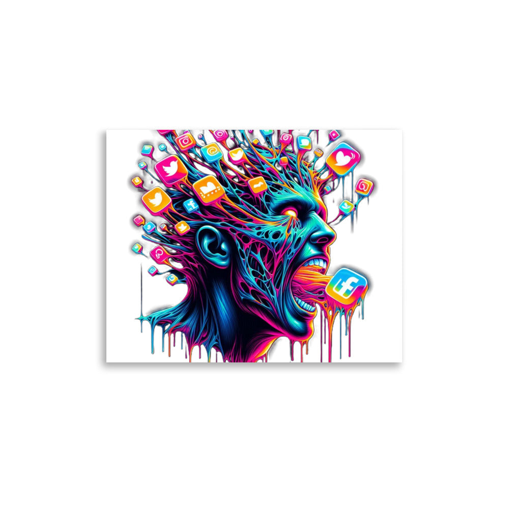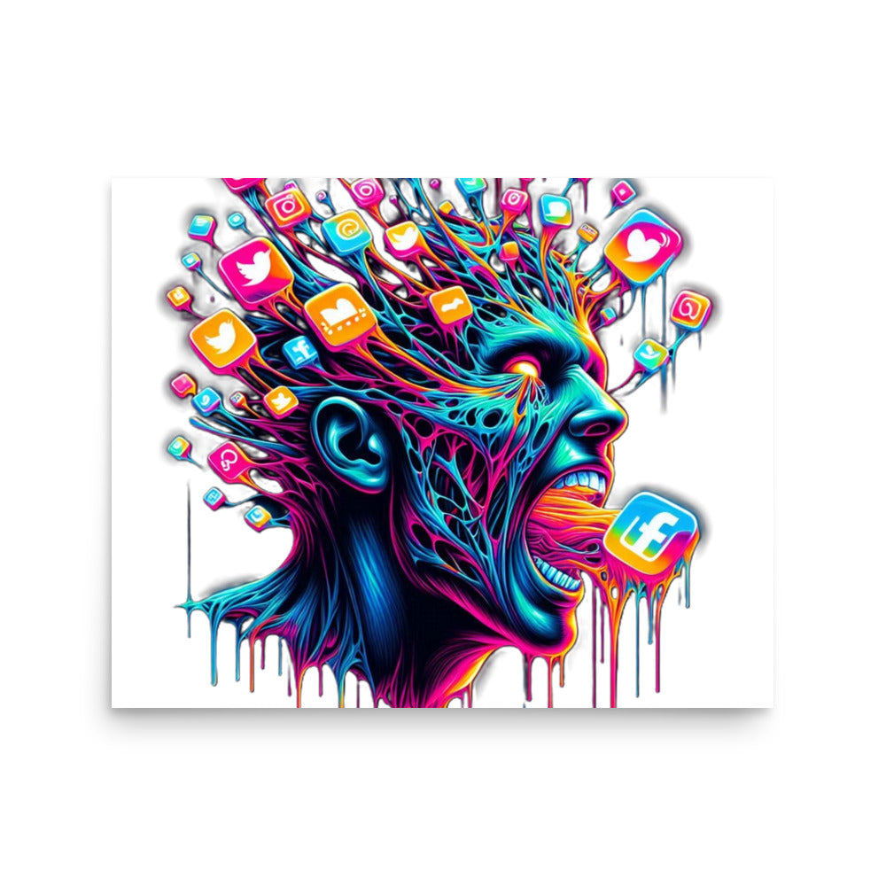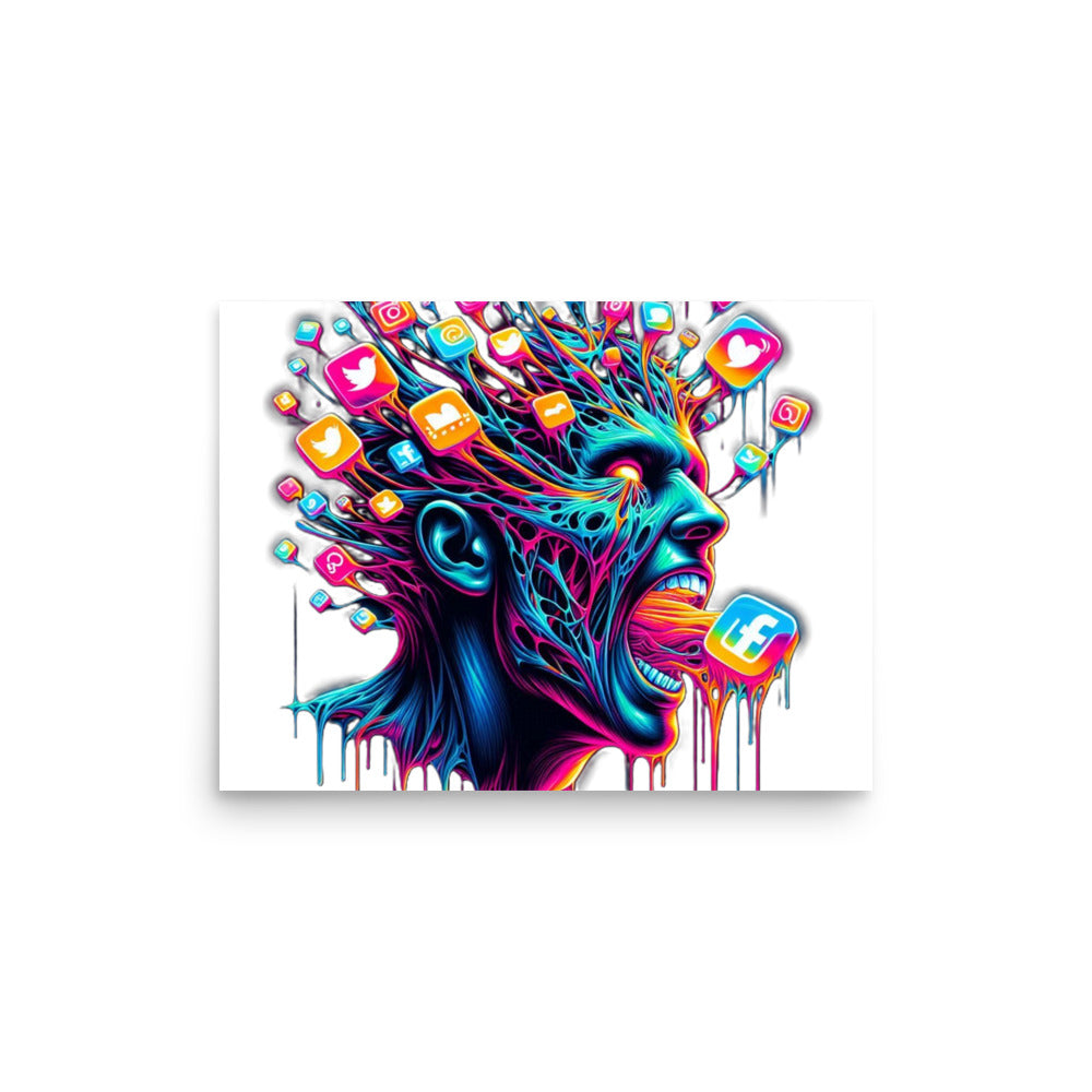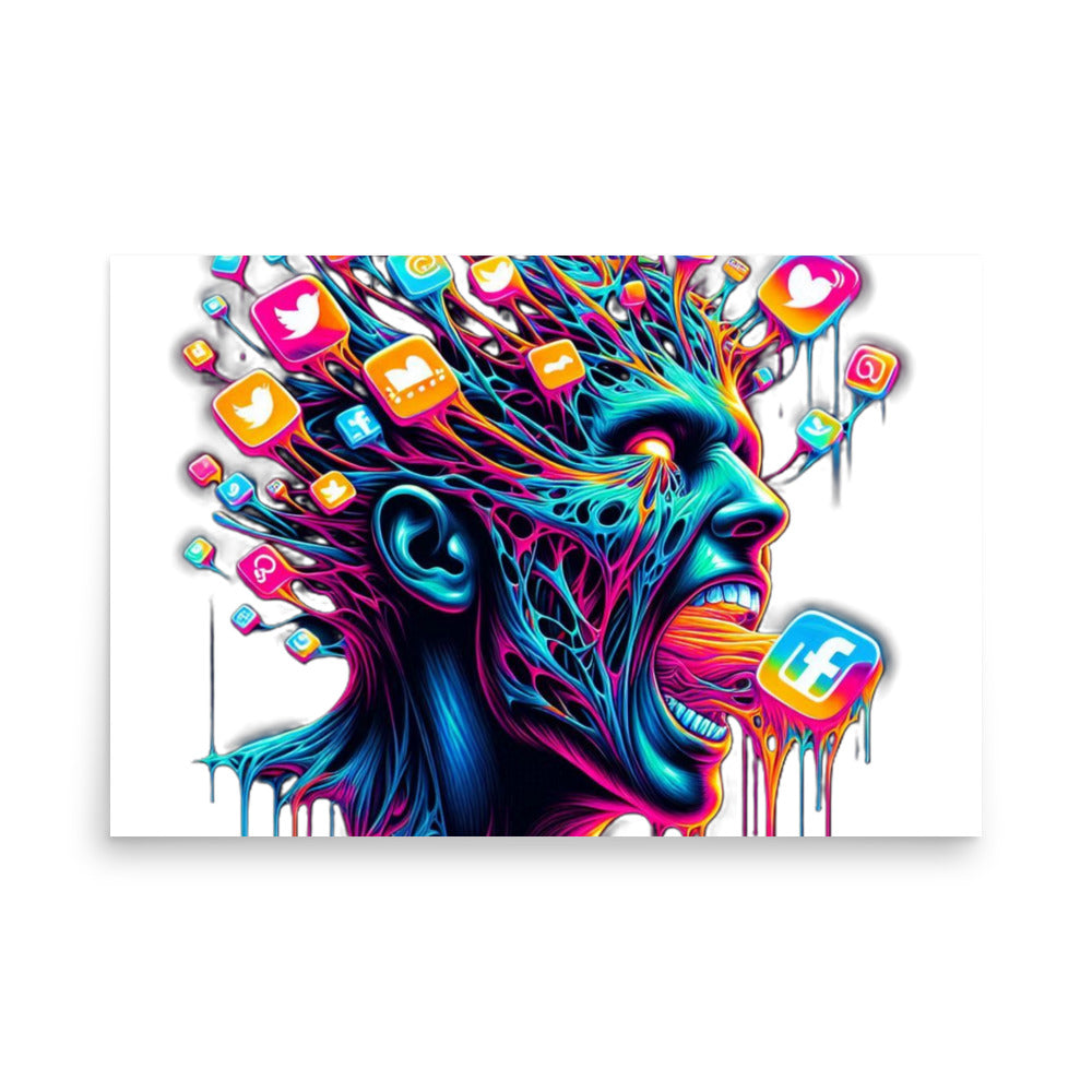 Tauche ein in das Chaos der digitalen Welt mit diesem psychedelischen Design, das den Informations-Overload und die Mediensucht darstellt. Ein Must-have für Cyberpunk- und Kunstliebhaber.