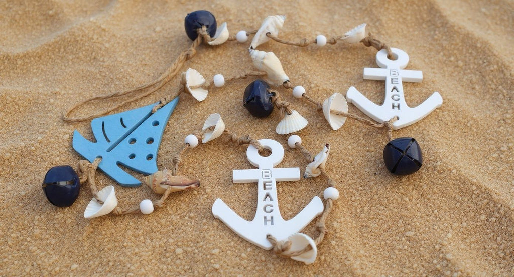 Maritime Deko- Lange Kordel/Wandhänger aus Holz, Metall und Resin, bemalt.